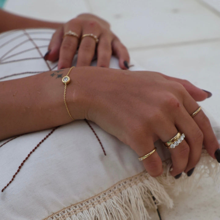 Inspired by the Spanish word for 'Queen,' the Reina Bracelet embodies royalty, power, and leadership. Crafted from 14k solid gold vermeil, this exquisite piece is designed to make you feel like royalty.